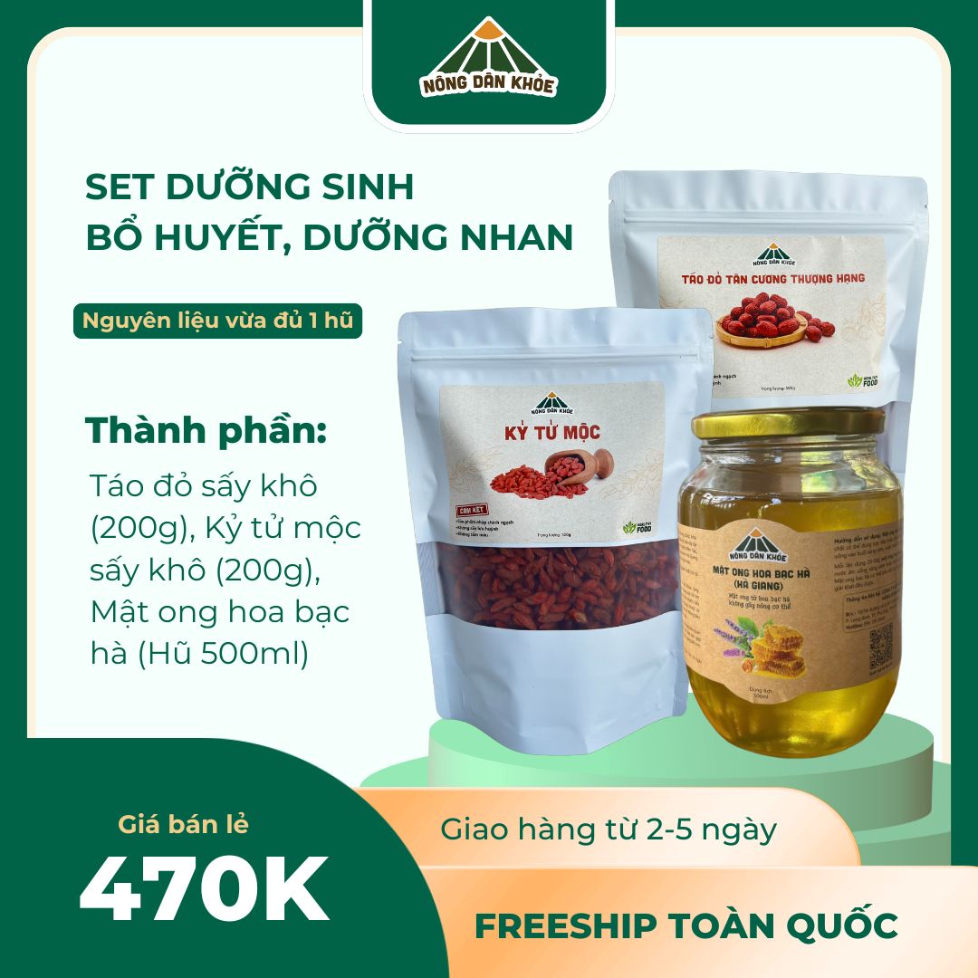 - 3 quả táo đỏ + 1 muỗng cà phê kỷ tử + 2 muỗng cà phê mật ong